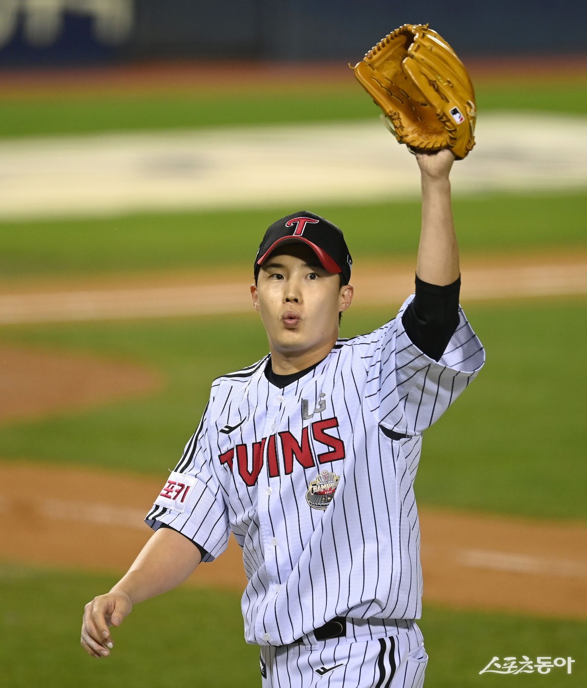 17일 서울 잠실야구장에서 ‘2024 신한은행 SOL뱅크 KBO리그’ 삼성 라이온즈와 LG 트윈스의 포스트시즌 플레이오프 3차전 경기가 열렸다. 선발 투수로 등판한 LG 임찬규가 6회초 1사 상황에서 교체되고 있다. 잠실|김종원 기자 won@donga.com