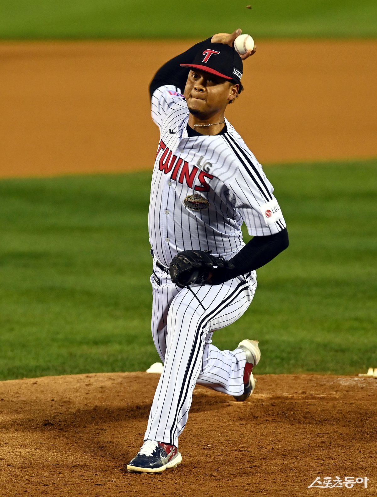 17일 서울 잠실야구장에서 ‘2024 신한 SOL 뱅크 KBO리그’ LG 트윈스와 삼성 라이온즈의 PO 3차전 경기가 열렸다. 6회초 1사에서 LG 에르난데스가 구원 등판해 볼을 던지고 있다. 잠실 | 김민성 기자 marineboy@donga.com