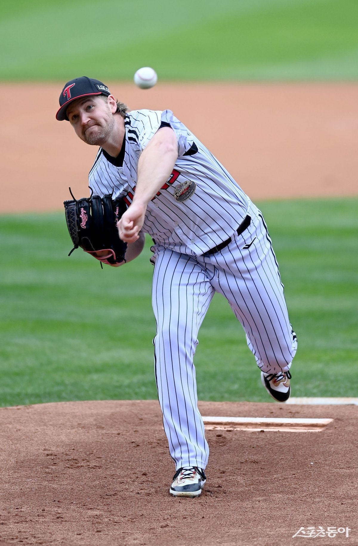 19일 서울 잠실야구장에서 ‘2024 신한은행 SOL뱅크 KBO리그’ 삼성 라이온즈와 LG 트윈스의 포스트시즌 플레이오프 4차전 경기가 열렸다. 선발 투수로 등판한 LG 엔스가 역투하고 있다. 잠실|김종원 기자 won@donga.com
