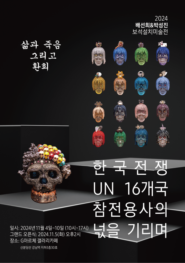 등단 시인 배선희 작가와 박성진 작가의 ‘해골 보석 설치 미술전’이 11월 4일부터 서울 강남역 G아르체갤러리 까페에서 ‘삶과 죽음 그리고 환희’라는 주제로 열린다.