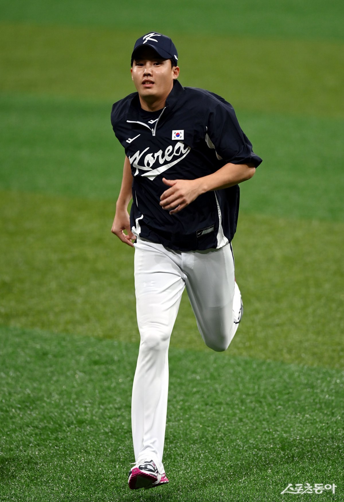 2024 세계야구소프트볼협회(WBSC) 프리미어12에 출전하는 한국 야구대표팀이 30일 서울 고척스카이돔에서 훈련을 가졌다. 대표팀에 합류한 임찬규가 몸을 풀고 있다. 고척 | 김민성 기자 marineboy@donga.com