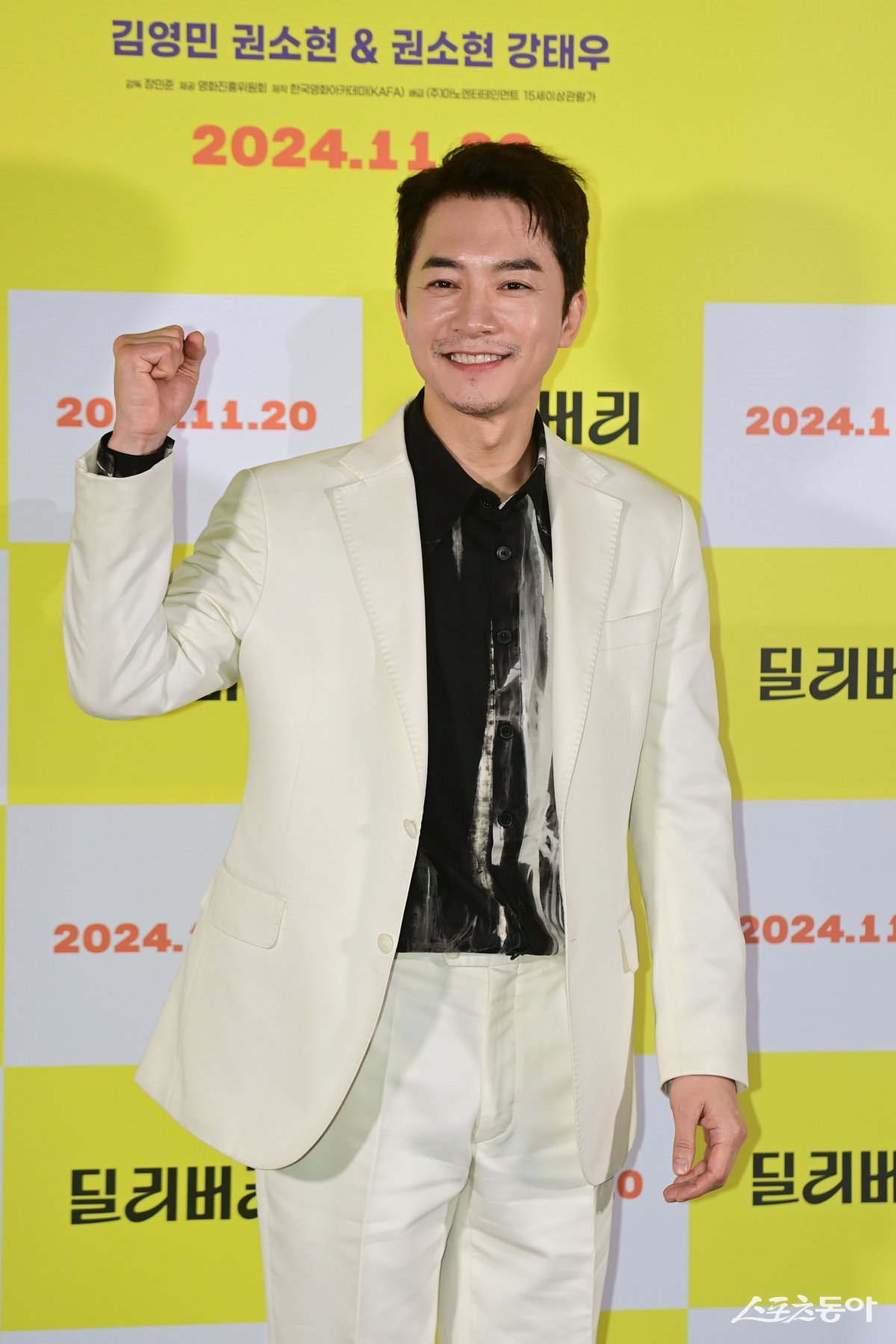배우 김영민이 11일 서울 용산구 CGV용산아이파크몰점에서 열린 영화 ‘딜리버리’ 언론시사회에서 포즈를 취하고 있다. 주현희 기자 teth1147@donga.com