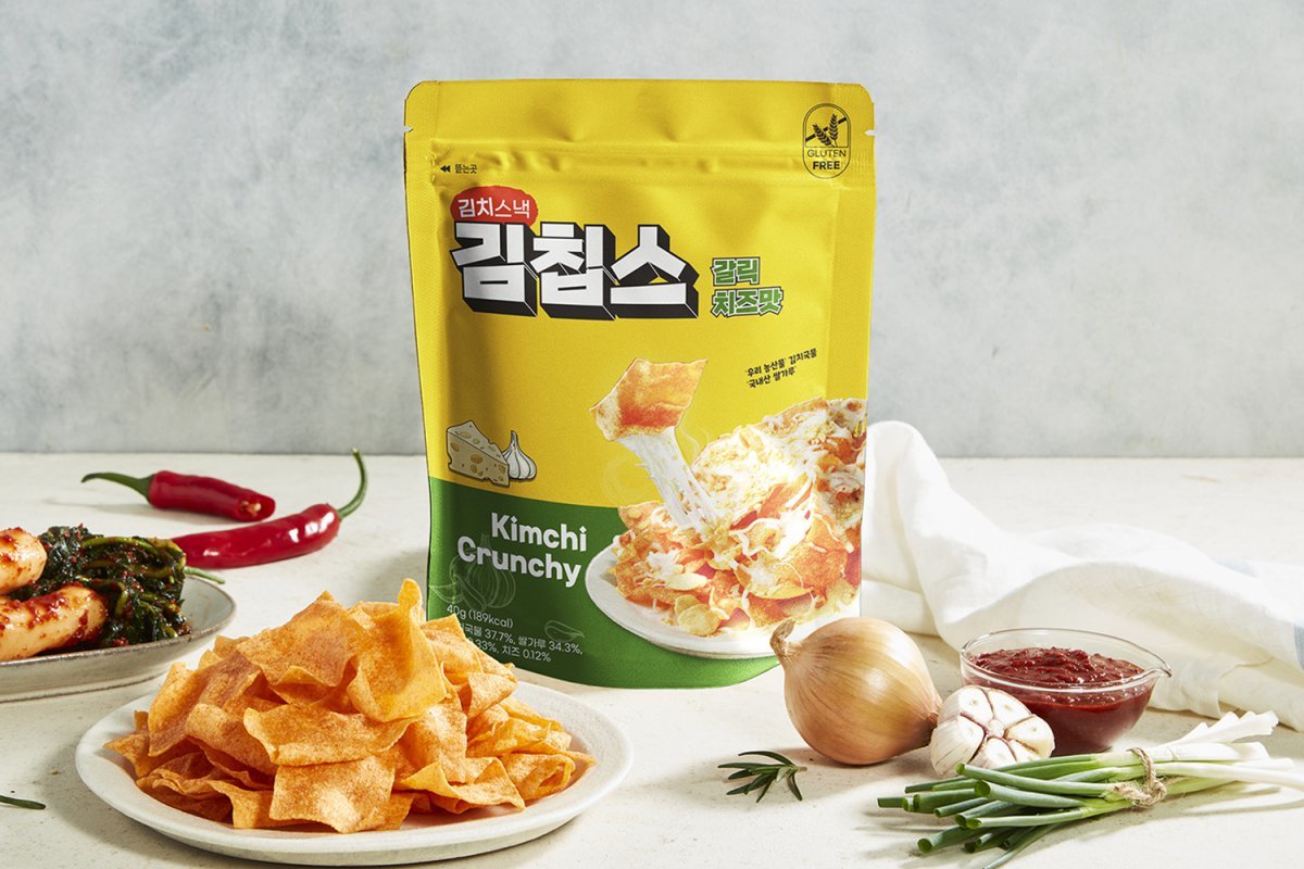 우리 쌀과 국내산 김치로 만든 토종 김치스낵 ‘김칩스’가 오리지널 100만봉 판매 달성을 기념하며 신제품 김칩스 갈릭치즈맛을 출시했다.김칩스 갈릭치즈맛은 우리 농산물과 국내산 쌀로 만든 김칩스에 모짜렐라 치즈와 마늘을 더해 감칠맛을 한단계 끌어올린 제품이다.