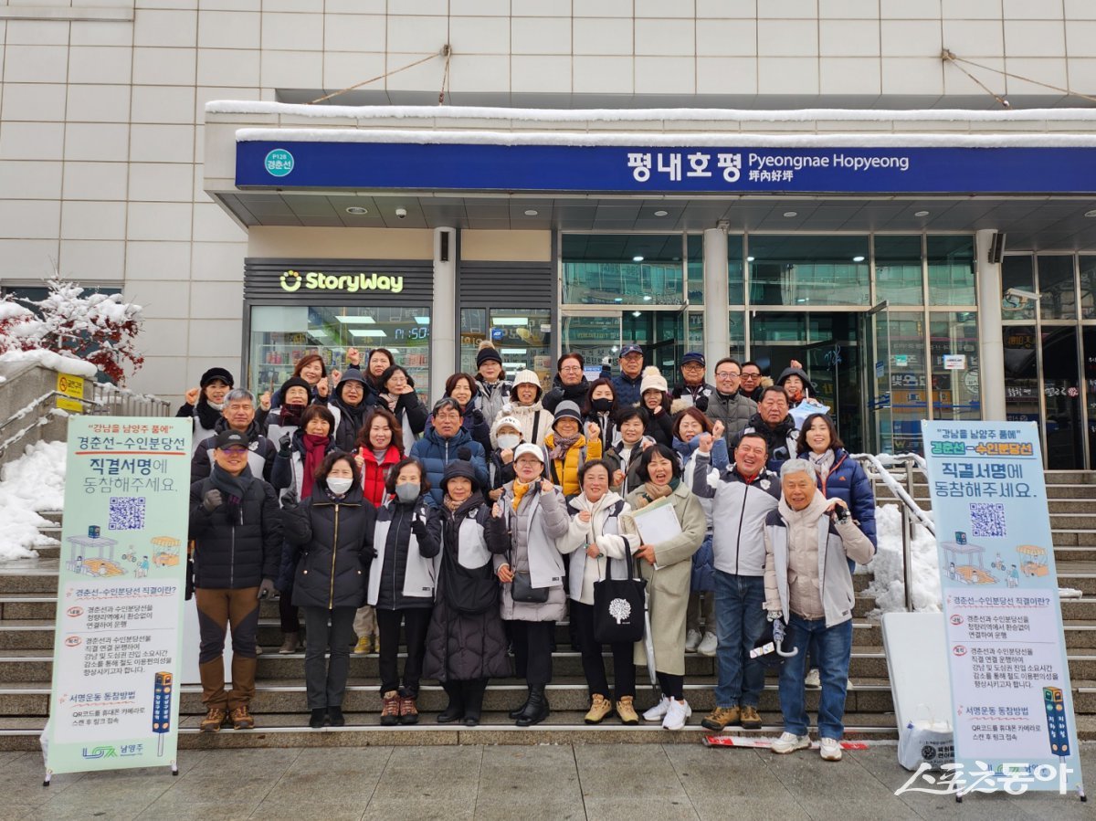 남양주시(시장 주광덕) 호평동 통장협의회(회장 최경열)는 지난 27일 평내호평역에서 경춘선-수인분당선 직결 추진을 위한 서명운동을 진행했다고 29일 밝혔다.