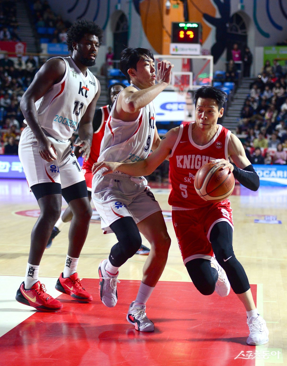 1일 서울 잠실학생체육관에서 열린 ‘2024-2025 프로농구’ SK와 KT 경기에서 SK 김선형이 KT의 수비를 뚫고 골밑을 공격하고 있다. 잠실|김종원 기자 won@donga.com