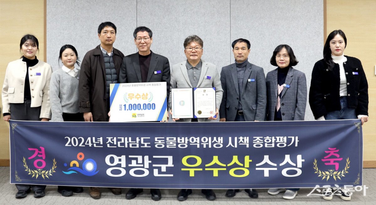 영광군이 최근 전라남도에서 주관하는 ‘2024년 동물방역위생 시책 종합평가’에서 우수상을 수상했다. 사진제공=영광군
