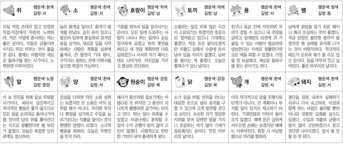 ■ 스포츠동아 오늘의 운세 띠별|운수 좋은 날 (음력: 11월 3일)