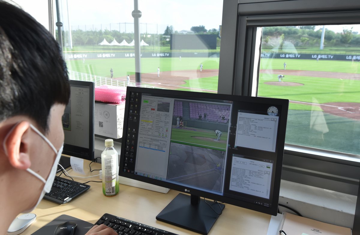 경기운영요원이 ABS 측정 결과를 확인하고 있다. 뉴시스