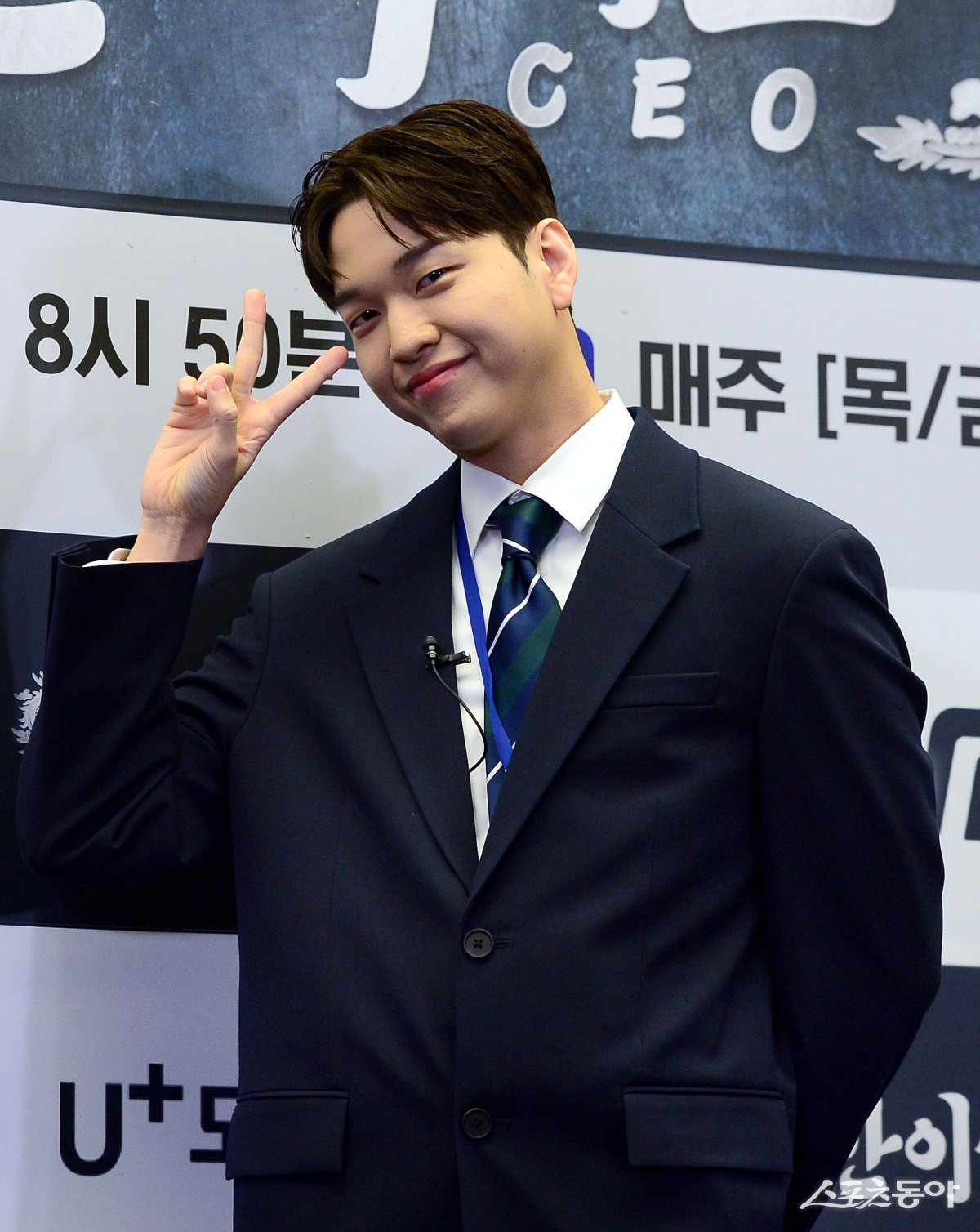 5일 서울 상암동 스탠포드 호텔에서 열린 ENA X LG유플러스 STUDIO X+U ‘기안이쎄오’ 제작발표회에 참석한 유재필이 카메라를 향해 포즈를 취하고 있다. 김민성 기자 marineboy@donga.com