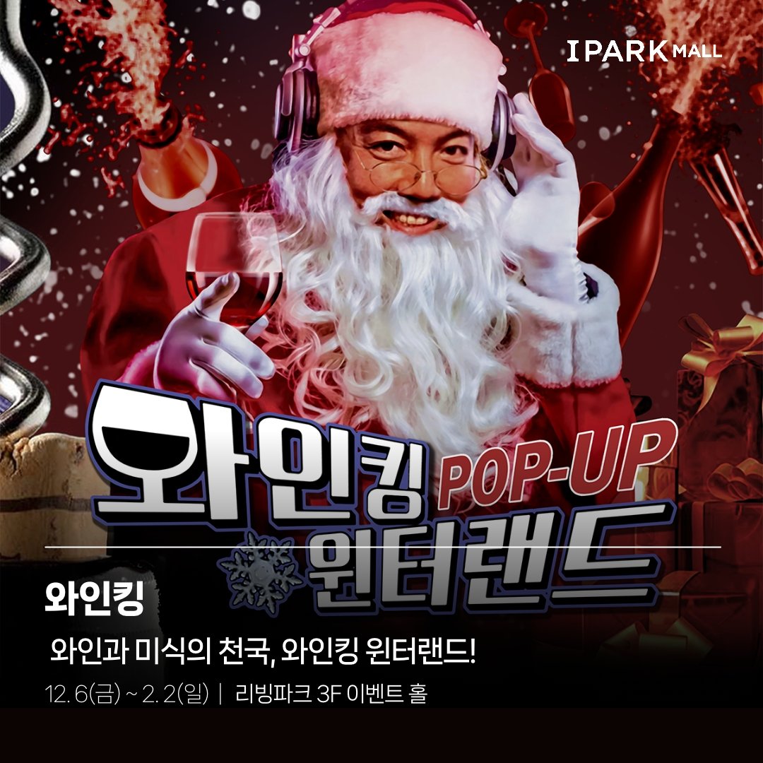 HDC아이파크몰 용산점이 6일부터 내년 2월 2일까지 리빙파크 3층 이벤트홀에서 와인 전문 팝업스토어 ‘와인킹 윈터랜드’(사진)를 운영한다.