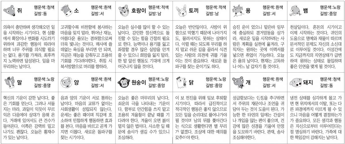 ■ 스포츠동아 오늘의 운세 띠별|운수 좋은 날 (음력: 11월 6일)