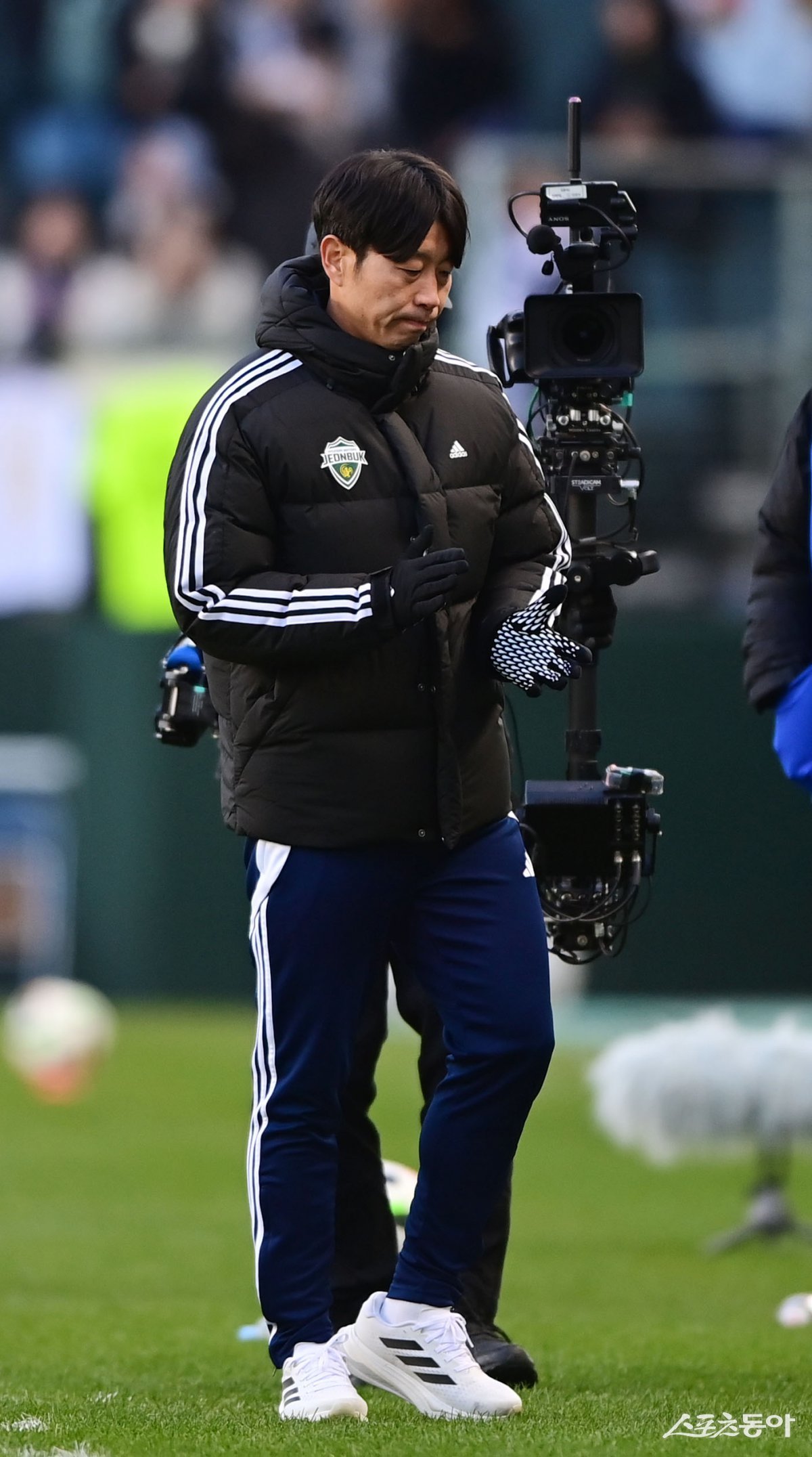 8일 전주월드컵경기장에서 열린 ‘하나은행 K리그 2024’ 승강 플레이오프 2차전 전북 현대모터스와 서울 이랜드의 경기에서 합계 스코어 4-2로 승리한 전북 김두현 감독이 손뼉을 치고 있다. 전주 | 주현희 기자 teth1147@donga.com