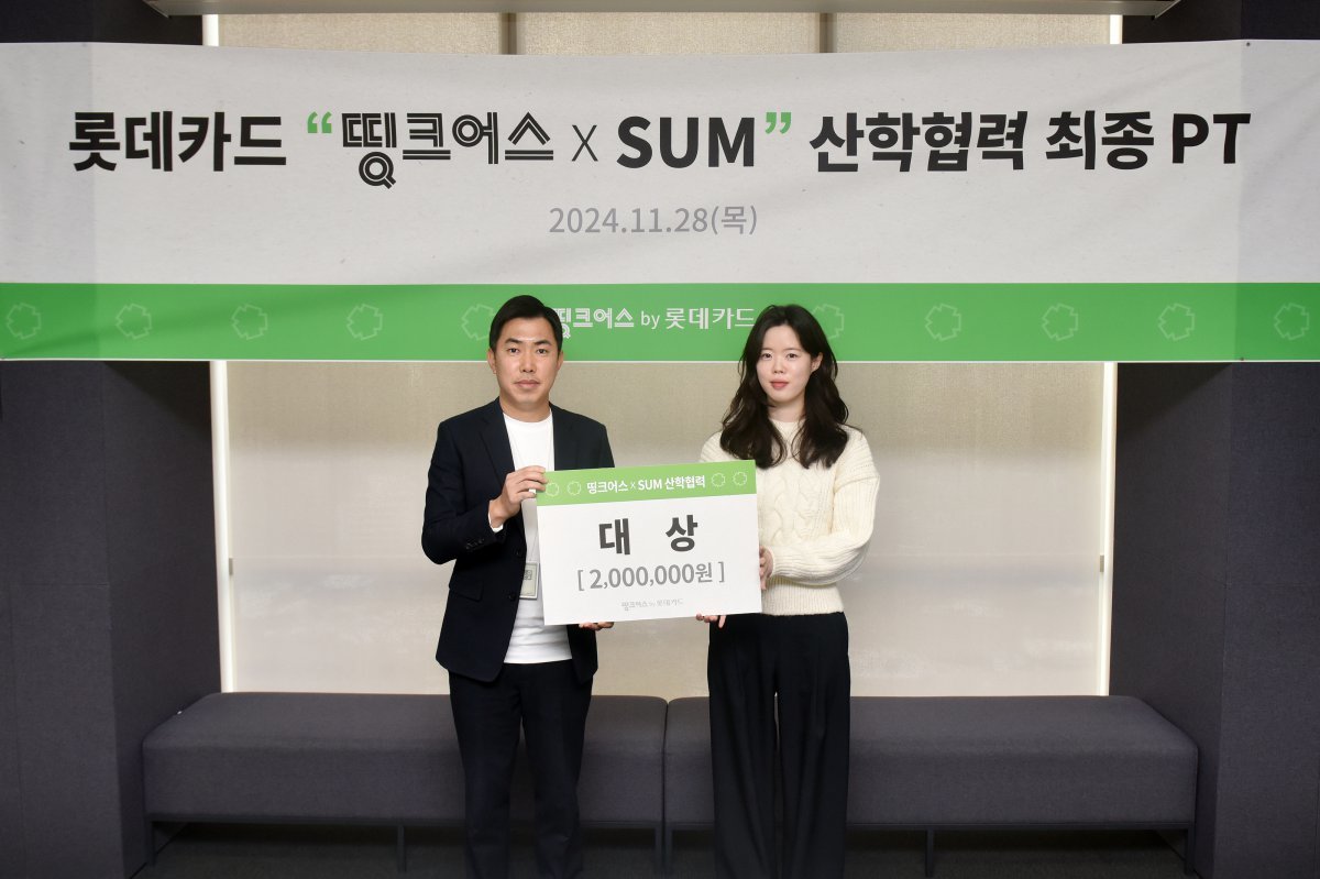 대상을 받은 이화여대 DECK팀은 음식 폐기물과 지역 소멸 등 사회 문제 해결을 위한 롯데카드 디지로카 앱을 활용한 MZ세대 고객 참여 방안을, 최우수상의 한양대 HESA팀은 띵크어스 캠페인의 MZ세대 고객 인지도 확대를 위한 오프라인 프로그램을, 우수상의 서강대 LENS팀은 띵크어스 캠페인에 참여 중인 지역 가치 창업가 ‘로컬 크리에이터’의 대학생 대상 직무 체험 교육, 예술 작가 ‘히든 크리에이터’의 문화 예술 교육 프로그램을 제안했다.