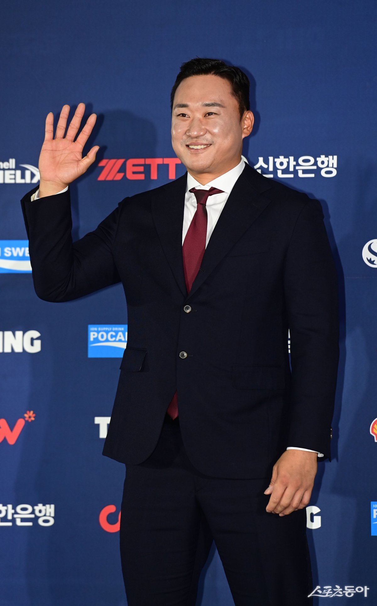 KIA 김태군이 13일 서울 강남구 삼성동 코엑스 오디토리움에서 열린 ‘2024 신한은행 SOL 뱅크 KBO 골든글러브’ 레드카펫에서 포즈를 취하고 있다. 주현희 기자 teth1147@donga.com