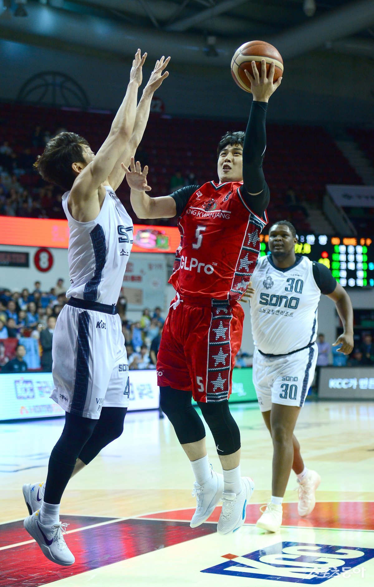 15일 안양 정관장 아레나에서 열린 ‘2024-2025 프로농구’ 정관장과 소노 경기에서 정관장 변준형이 소노의 수비를 뚫고 골밑 슛을 하고 있다. 안양|김종원 기자 won@donga.com