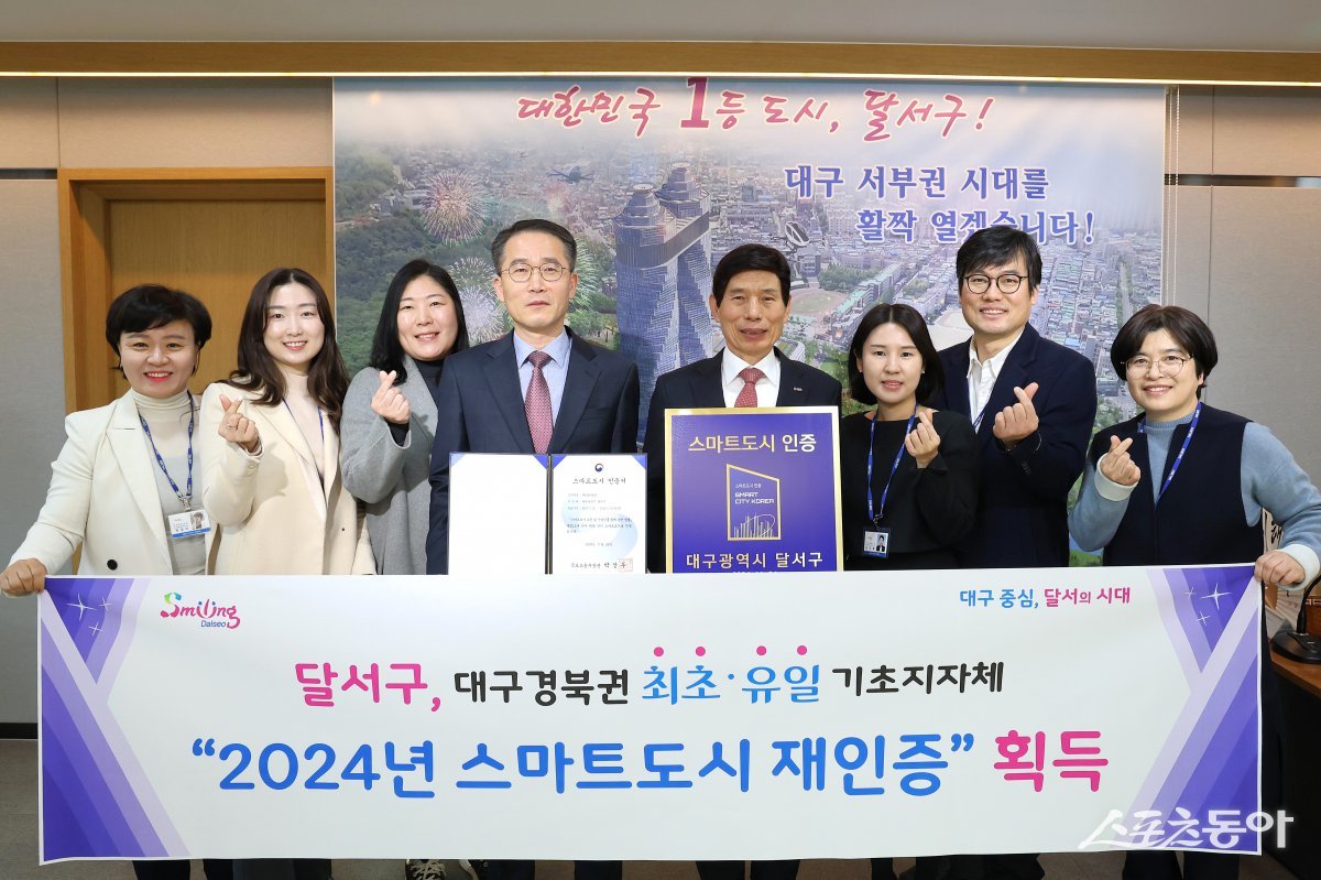 대구 달서구(구청장 이태훈)가 최근 국토교통부가 주관하는‘2024년 스마트도시 인증(중소도시 부문)’에서 대구경북권 기초지자체 중에서 최초이자 유일하게 스마트도시 재인증을 획득했다고 19일 밝혔다.
