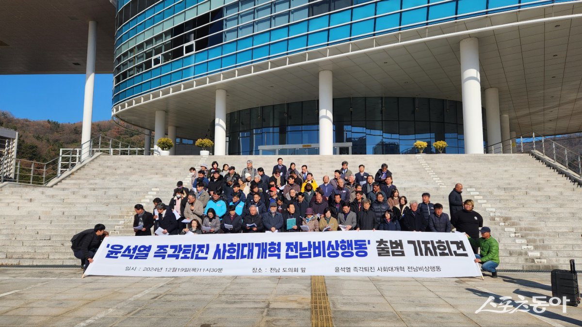 윤석열즉각퇴진·사회대개혁 전남비상행동(이하 전남비상행동)이 19일 전남도의회 앞에서 출범식을 개최했다.