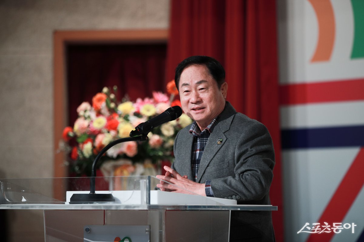 주광덕 시장이 지난 18일 시청 다산홀에서 제38회 다산정약용문화제 문예대회에서 축사를 하고 있다. 사진제공ㅣ남양주시