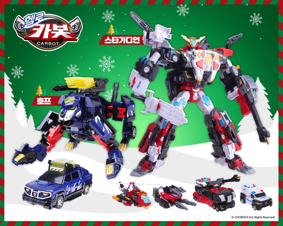 회사 측은 “매년 크리스마스 시즌에는 최고의 완구를 선보여 왔고, 이에 해당하는 스타가디언은 4개의 카봇이 최고의 팀워크를 자랑하는 훈훈한 대형 합체물”이라며 “크리스마스 선물로 단품을 고려한다면 SUV에서 호랑이로 변신하고, 재미있는 기믹을 갖춘 호프를 추천한다”고 했다.