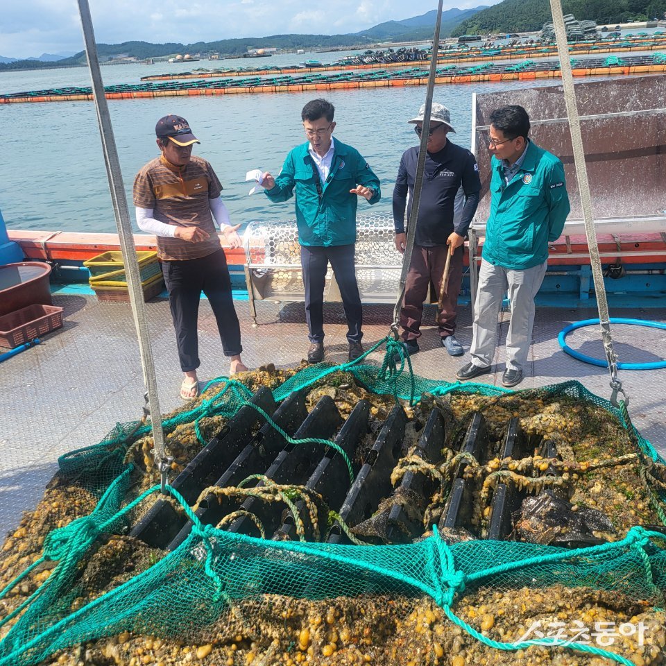 전남도 관계자가 관내 전복 양식장을 방문한 모습. 사진제공=전남도