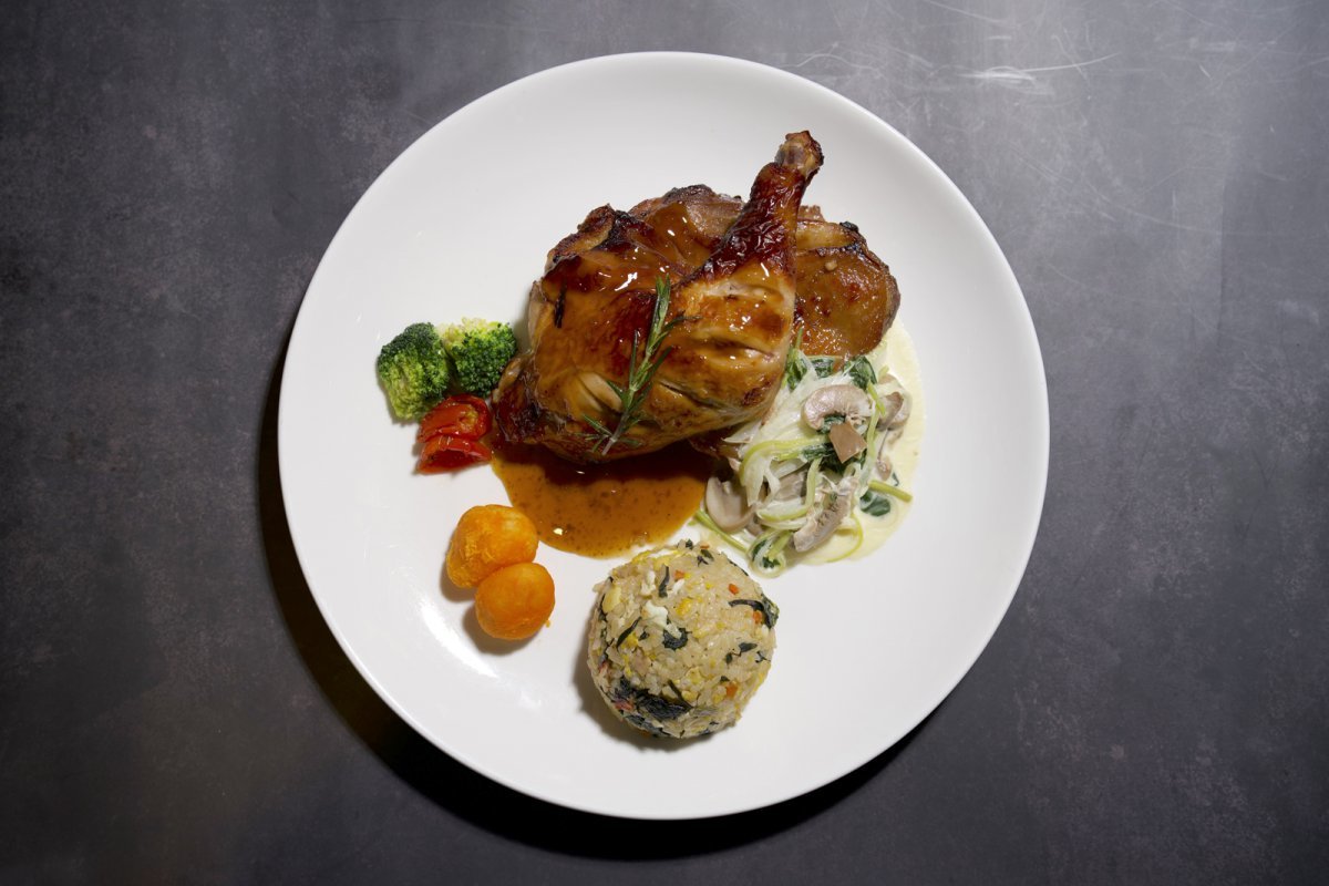 강원랜드 카지노 내 식음업장 ‘팬지’에서 판매하는 ‘곤드레 볶음밥과 황기간장으로 양념한 닭다리 구이’ 사진제공|강원랜드