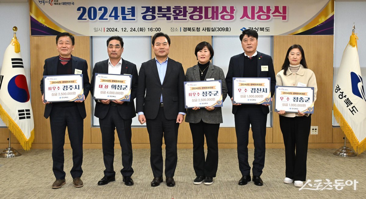 경북도는 24일 도청 사림실에서 2024년 경북환경대상 시상식을 개최하고, 올해 기후환경 전 분야에 관한 평가 결과에 따라 우수 시군을 선정해 도지사 표창과 시상금을 지급하고 노고를 격려했다고 25일 밝혔다.