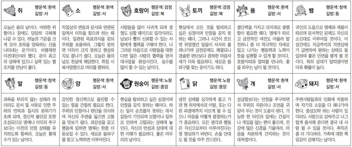 ■ 스포츠동아 오늘의 운세 띠별|운수 좋은 날 (음력: 11월 30일)