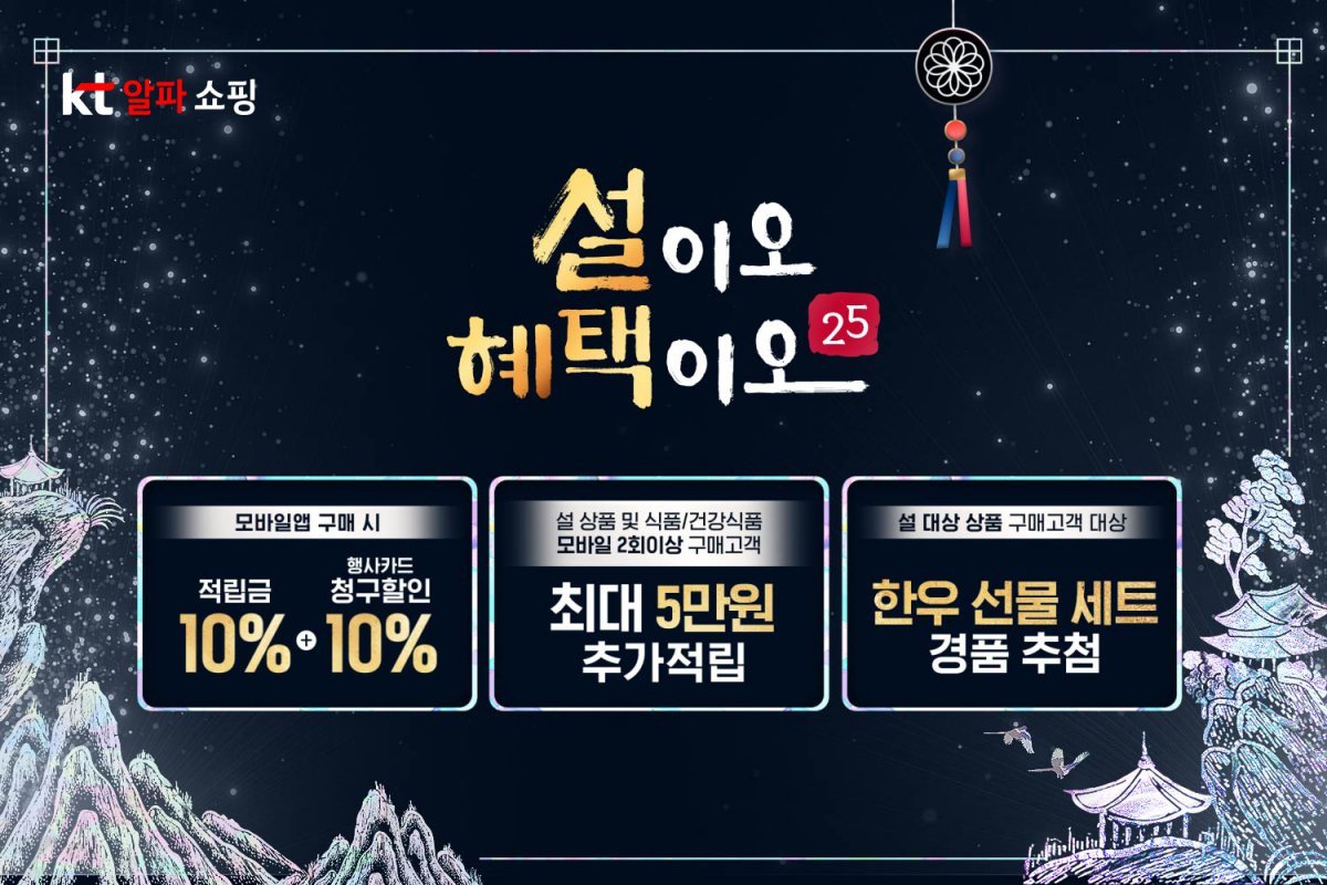 KT알파 쇼핑이 30일까지 ‘설이오(25) 혜택이오(25)’ 프로모션(사진)을 연다.