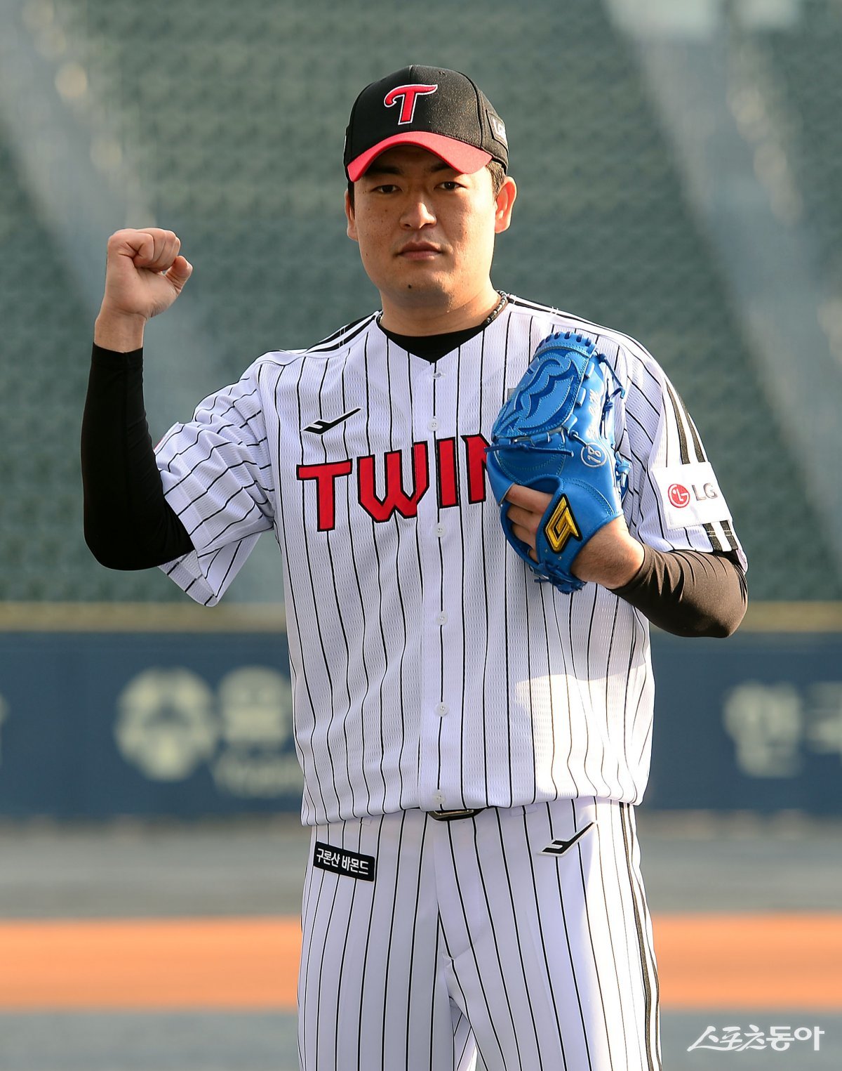 8일 서울 잠실야구장에서 ‘2025년 LG트윈스 신년 인사회’가 열렸다. LG에 새롭게 입단한 심창민이 카메라를 향해 포즈를 취하고 있다. 잠실 | 김민성 기자 marineboy@donga.com