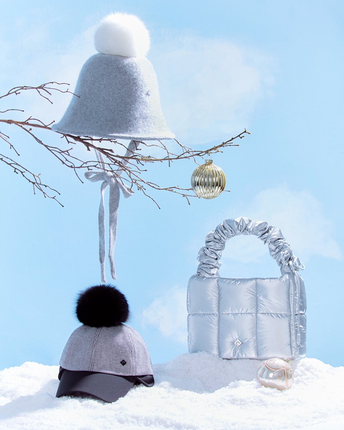 동그란 모양의 하얀 방울이 포인트인 ‘방울 니트 버킷 햇’부터 기존 버킷 햇을 색다르게 변형시킨 ‘여성 언발 변형캡’을 만날 수 있다. ‘방울 니트 버킷 햇’은 털방울이 달린 니트 소재의 버킷 햇이다. 부드러운 니트 소재와 오트밀, 회색 등 겨울과 어울리는 따뜻한 색상을 적용해 차분하면서도 클래식한 스타일링을 완성할 수 있다.