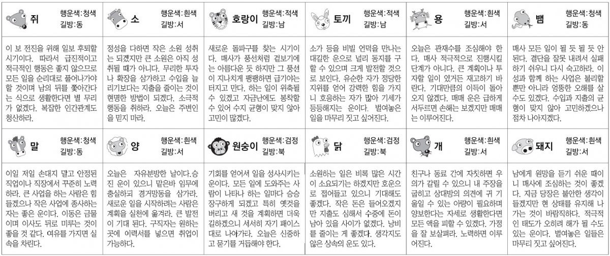 ■ 스포츠동아 오늘의 운세 띠별|운수 좋은 날 (음력: 12월 15일)