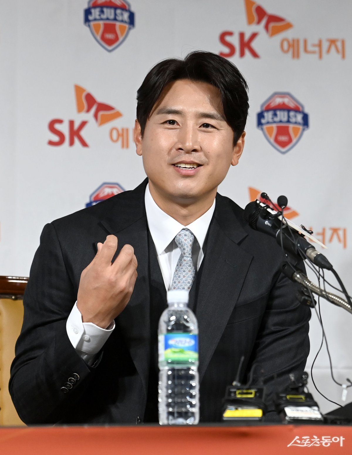 현역 은퇴를 선언한 구자철이 14일 서울 종로구 축구회관에서 열린 은퇴 기자회견에서 취재진의 질문에 대답하고 있다. 김종원 기자 won@donga.com