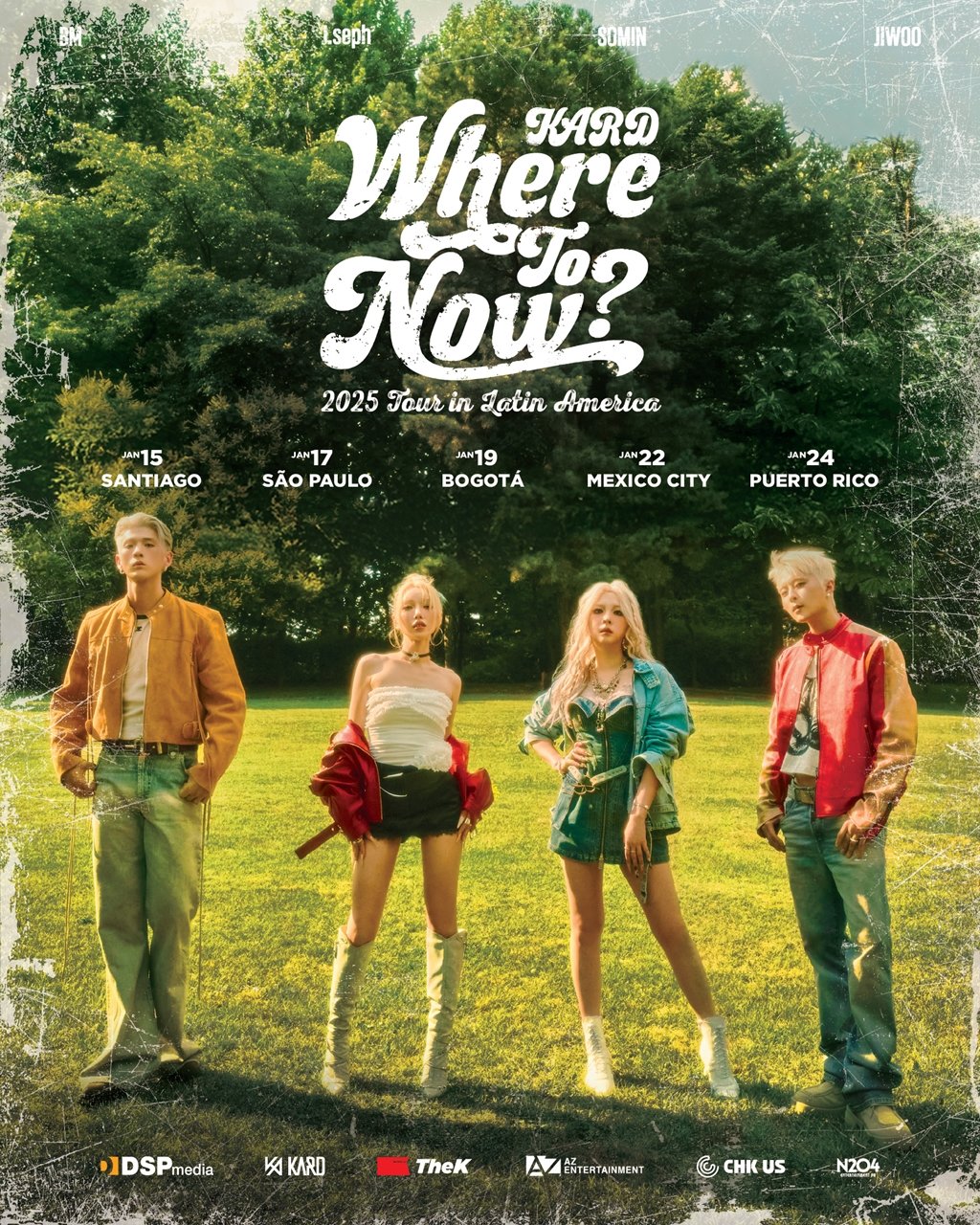 카드(비엠, 제이셉, 전소민, 전지우)는 오늘(15일, 이하 현지시간) 칠레 산티아고에서 월드투어 ‘KARD 2025 TOUR [Where To Now?] in Latin America’(이하 ‘Where To Now?’)를 개최하며, 라틴 아메리카 공연의 포문을 연다.