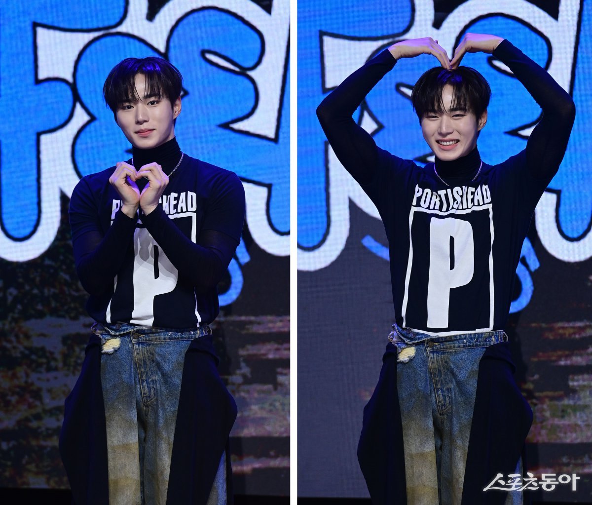 그룹 위아이 김준서가 15일 서울 서대문구 창천동 예스24원더로크홀에서 열린 일곱 번째 미니앨범 ‘The Feelings’ 발매 미디어 쇼케이스에서 포즈를 취하고 있다. 주현희 기자 teth1147@donga.com