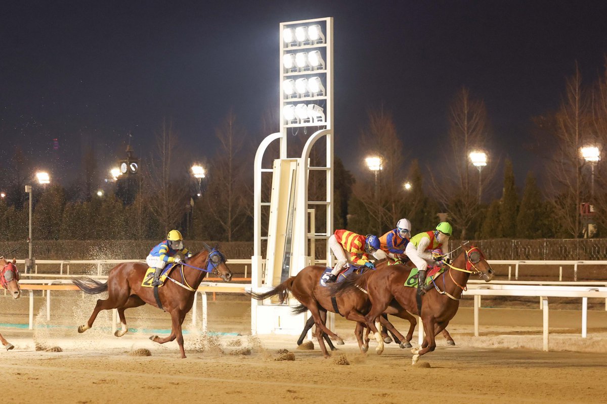 2025년 렛츠런파크 서울의 첫 1등급 경주인 12일 레이스에서 가장 먼저 결승선을 통과하는 빈체로카발로와 조재로 기수 사진제공|한국마사회