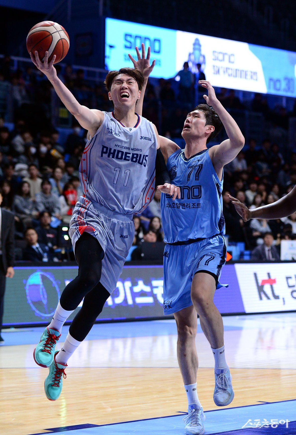 15일 경기도 고양체육관에서 열린 ‘2024-2025 KCC 프로농구’ 고양 소노와 울산 현대모비스의 경기에서 현대모비스 이우석이 소노 최승욱의 수비를 피해 슛을 쏘고 있다. 고양 | 김민성 기자 marineboy@donga.com