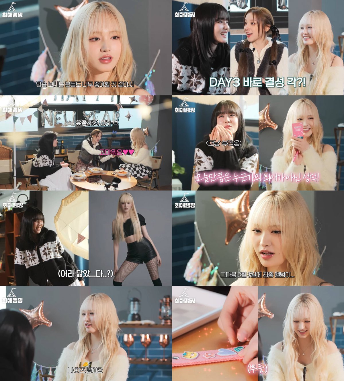 다채로운 에피소드들이 연이어 펼쳐진 가운데, 리즈는 윤이 “(리즈가) 아이브 멤버로 공개가 됐을 때 주변에서 너랑 닮은 애가 있다며 사진을 보여줬다”며 사진을 흉내 내자 경악을 금치 못하며 ‘찐친’ 모먼트를 발휘했다. 반면, 우기가 번호를 알려주려 하자 근처에 있는 ‘최애캠핑’ 초대장 종이를 잽싸게 건넸고, 번호가 써진 종이를 받은 뒤 “여기 되게 좋은 곳이다. 어떡해. 고마워요”라며 행복해하는 ‘성덕’의 모습을 보였다.
