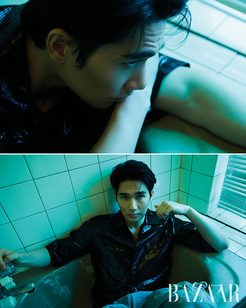 배우 엄태구가 함께한 패션 매거진 하퍼스 바자 코리아 화보가 공개됐다. 화보 속 엄태구는 욕실과 방 안, 길거리를 오가며 홍콩 영화 속 일상 같은 장면들을 연출했다.
