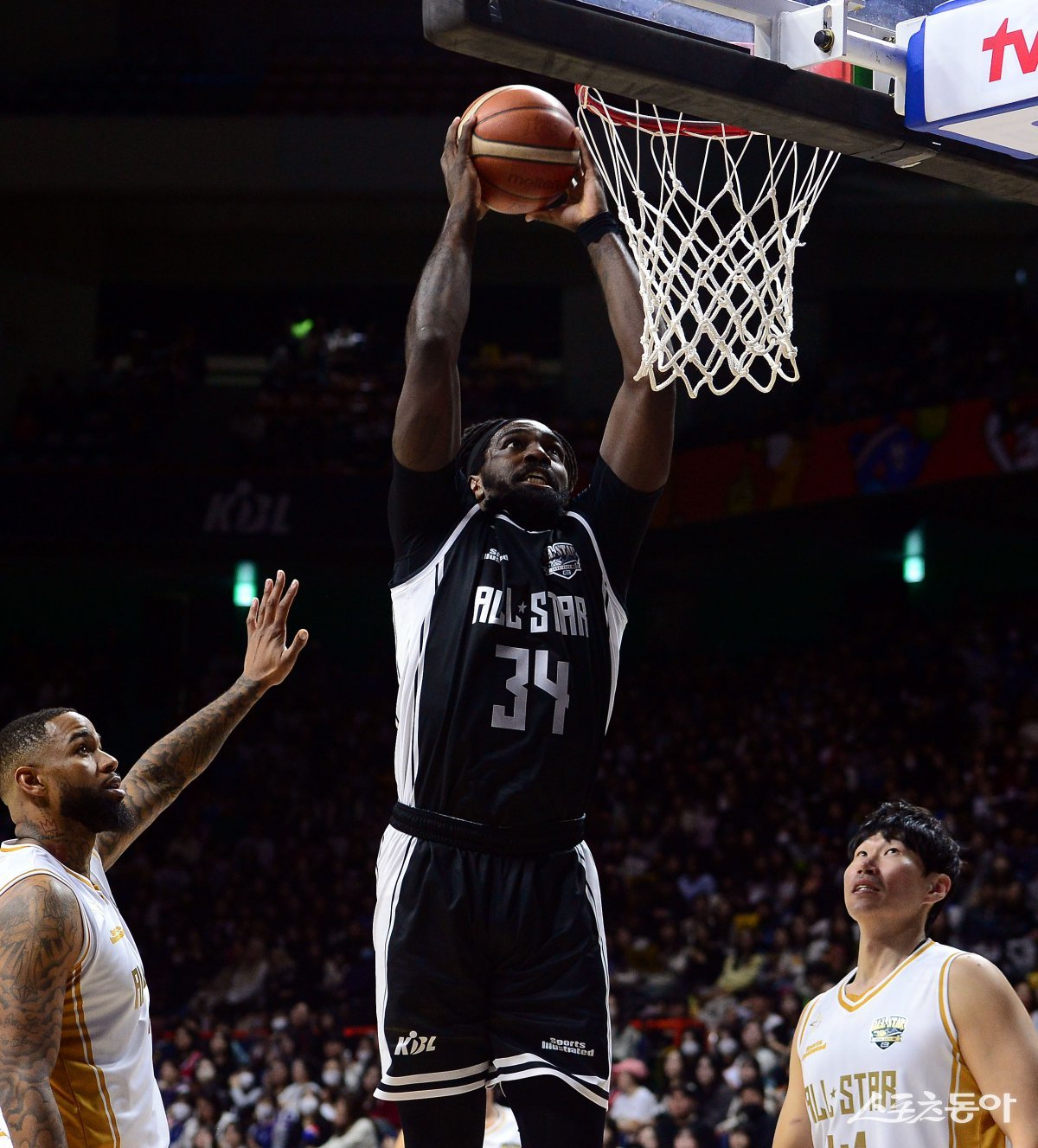 19일 부산 사직체육관에서 ‘2024-2025 KCC 프로농구 올스타전’ 경기가 열렸다. 크블몽 워니가 덩크슛을 하고 있다. 부산 | 김민성 기자 marineboy@donga.com