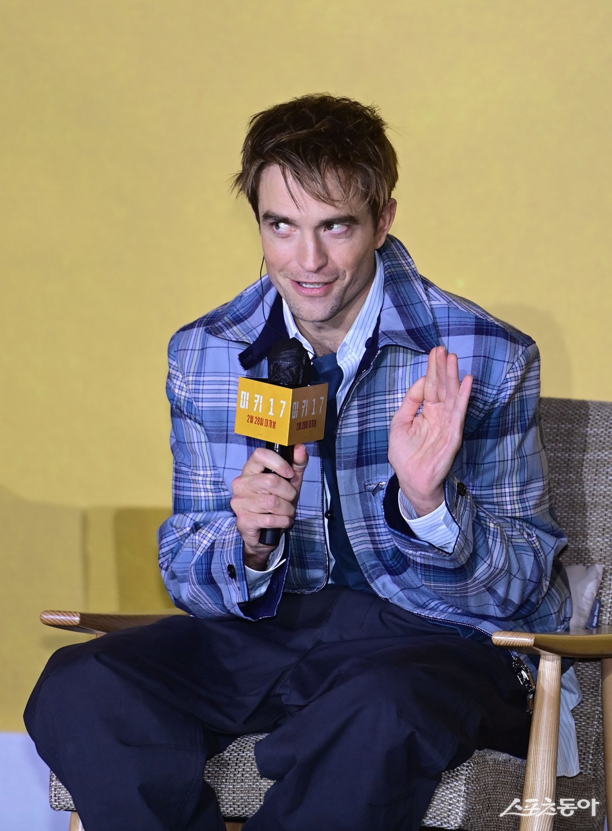 로버트 패틴슨이 20일 서울 용산구 CGV용산아이파크몰점에서 열린 영화 ‘미키 17’ 기자간담회에 참석해 인사말을 하고 있다. 주현희 기자 teth1147@donga.com