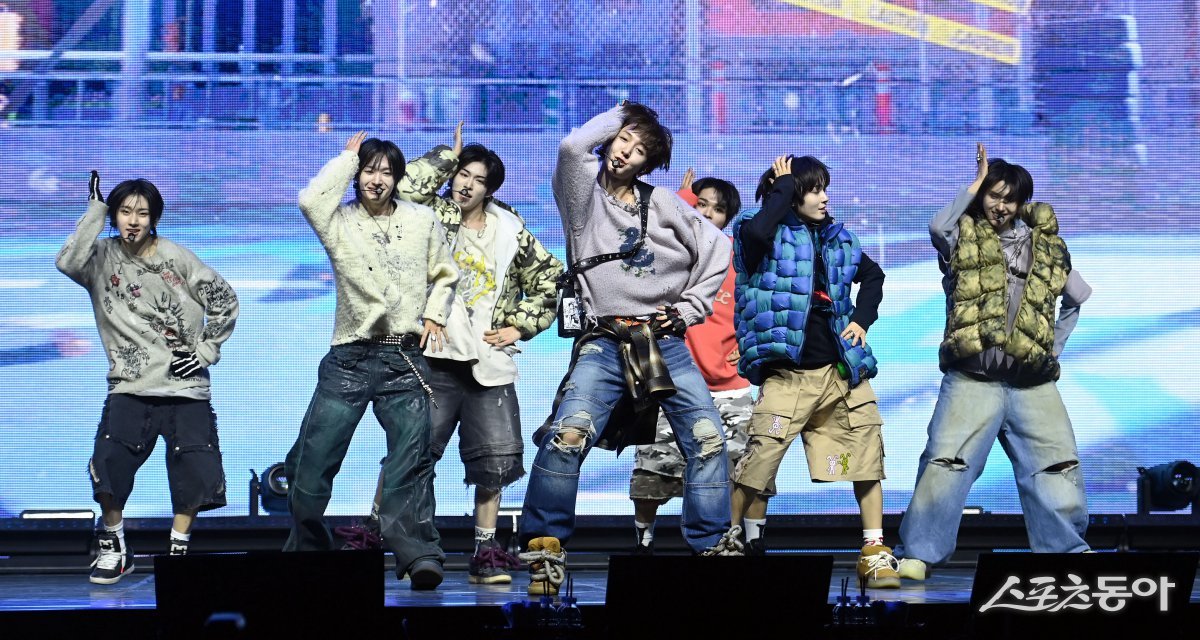 JYP의 신인 보이그룹 킥플립(KickFlip)이 20일 서울 광진구 예스24 라이브홀에서 열린 데뷔 앨범 ‘Flip it, Kick it(플립 잇, 킥 잇!)’ 발매 쇼케이스에서 화려한 공연을 펼치고 있다. 김종원 기자 won@donga.com