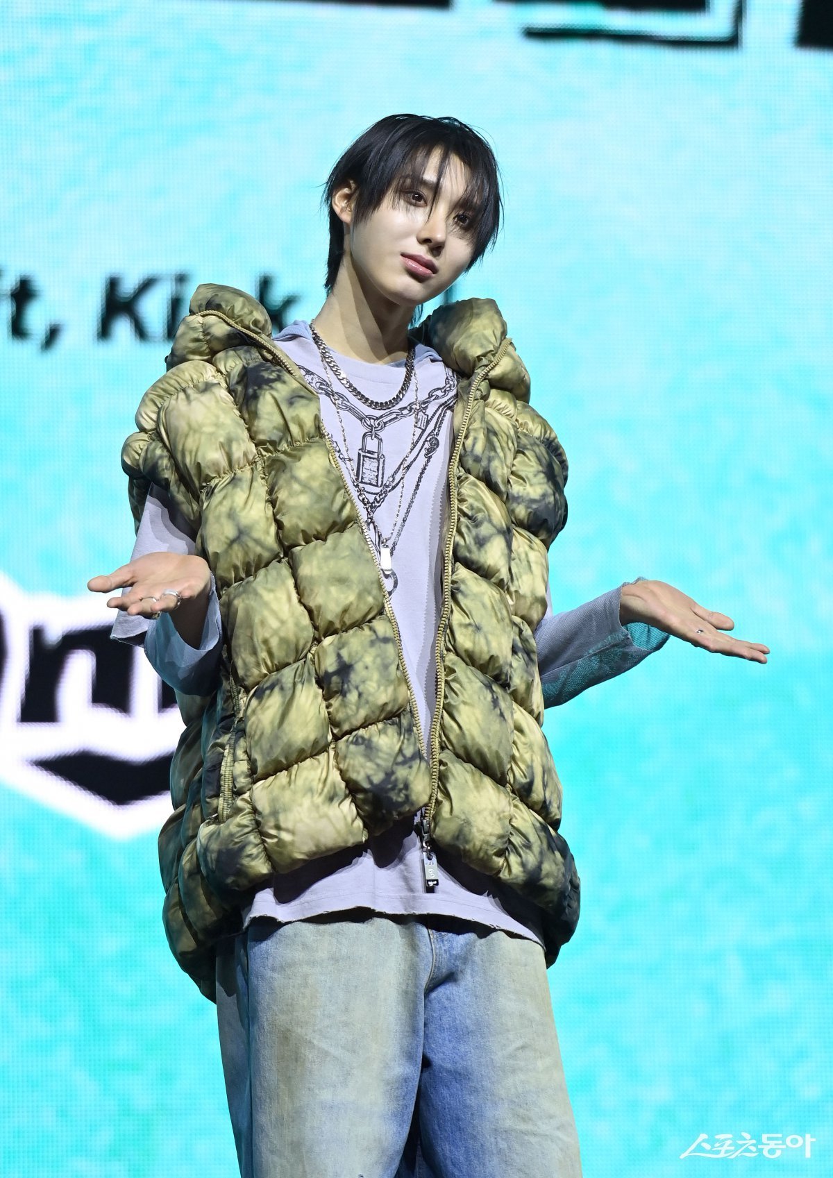 JYP의 신인 보이그룹 킥플립(KickFlip) 주왕이 20일 서울 광진구 예스24 라이브홀에서 열린 데뷔 앨범 ‘Flip it, Kick it(플립 잇, 킥 잇!)’ 발매 쇼케이스에서 포토타임을 갖고 있다. 김종원 기자 won@donga.com