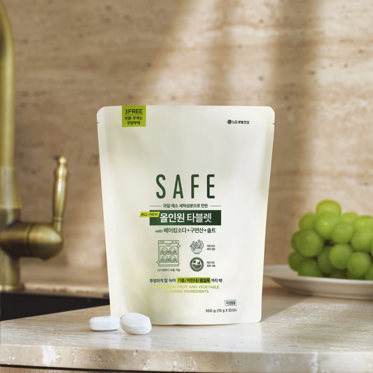 LG생활건강이 주방세제 ‘세이프 올인원 타블렛’(사진)을 내놓았다.