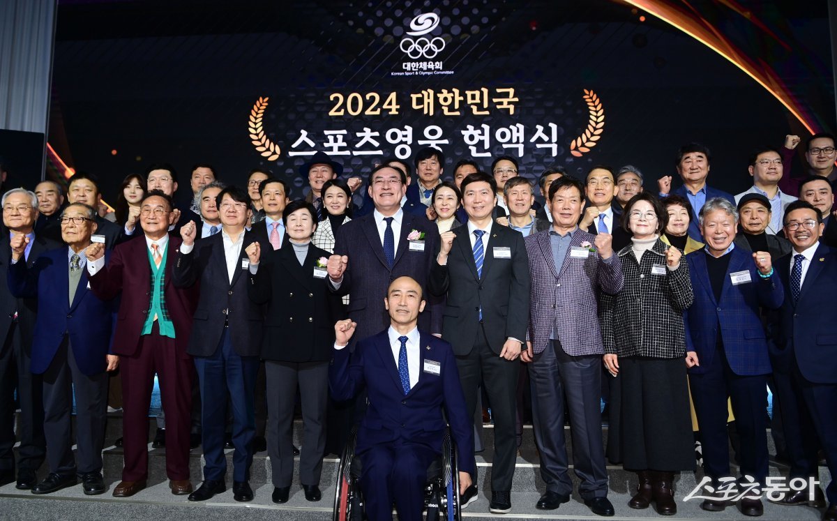 하형주 국민체육진흥공단 이사장이 21일 서울 송파구 방이동 올림픽파크텔 올림피아홀에서 열린 ‘2024 대한민국 스포츠영웅 헌액식’에서 기념 촬영을 하고 있다. 주현희 기자 teth1147@donga.com