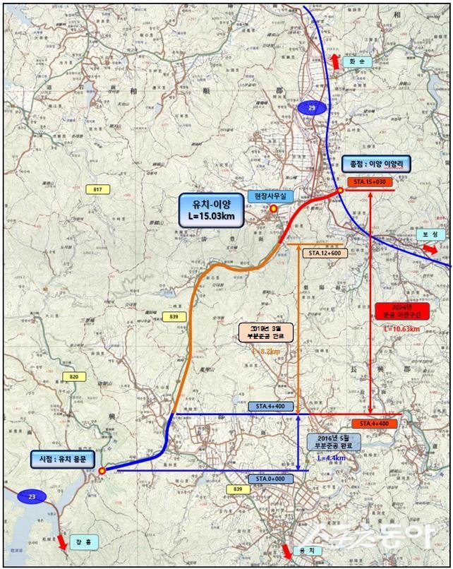 개선 구간은 총 15.03㎞다. 2016년 장흥 유치 교차로에서 우산 교차로까지 4.5㎞ 구간을, 2019년 장흥 우산 교차로에서 화순 청풍 교차로까지 7.2㎞ 구간을 부분 개통했다.