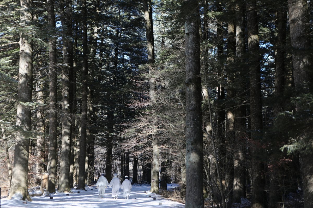 선재길 시작 지점에 있는 월정사 전나무숲길. 숲길의 전나무는 평균 나이가 약 83년이며 최고령 나무는 370년이 넘는데 눈내린 겨울 풍광이 일품이다 사진제공|지엔씨이십일