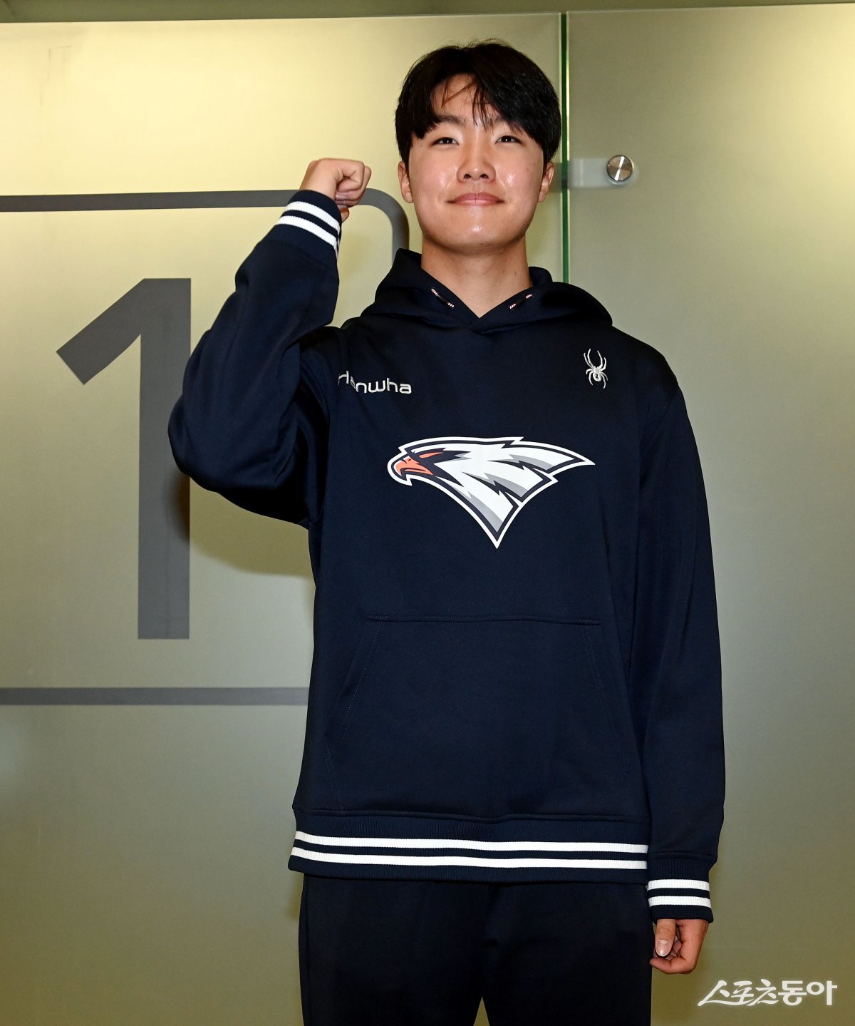 한화 이글스가 2025시즌 스프링캠프를 위해 22일 인천국제공항을 통해 호주 멜버른으로 출국했다. 2025 한화 신인선수 정우주가 카메라를 향해 포즈를 취하고 있다. 인천국제공항 | 김민성 기자 marineboy@donga.com