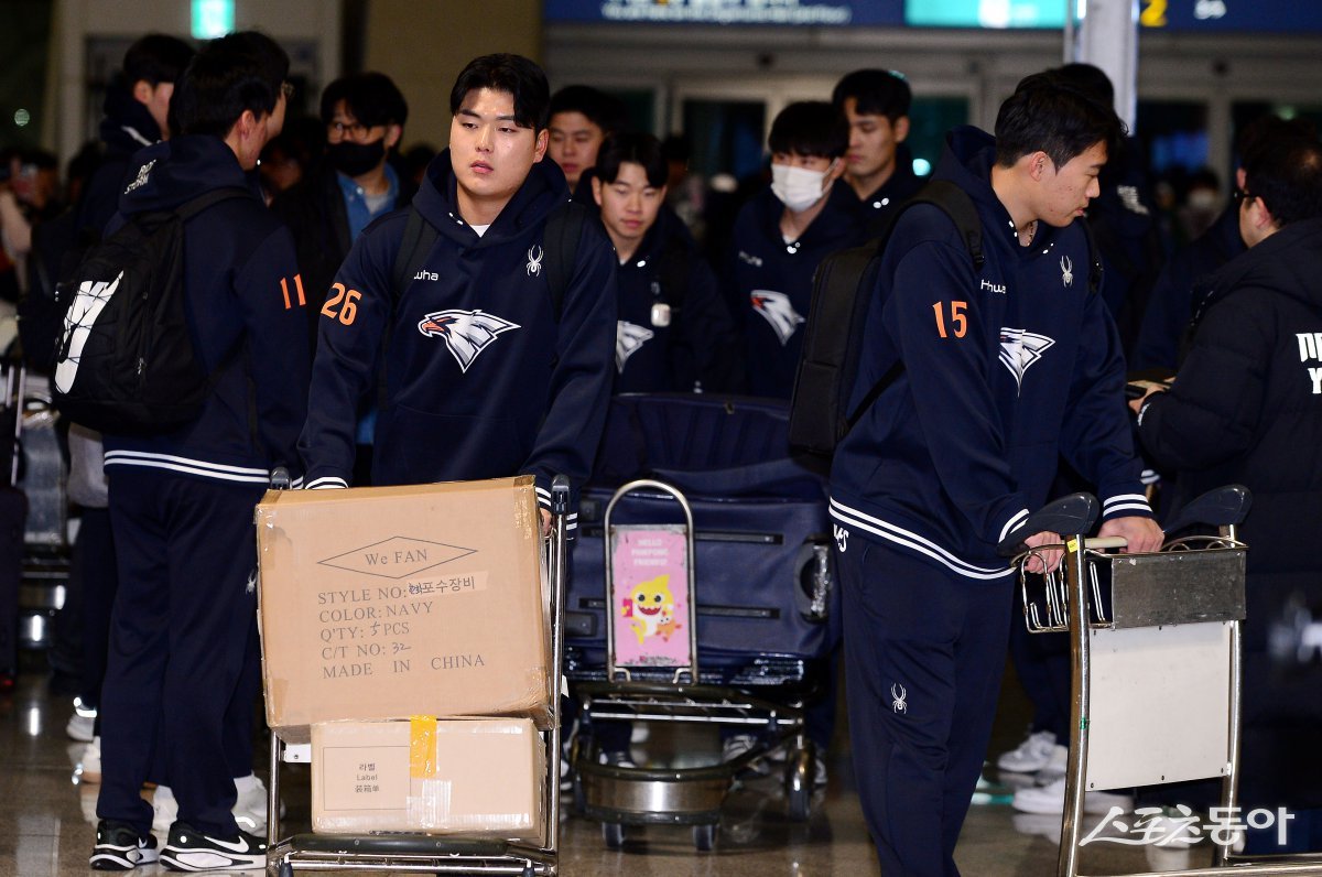 한화 이글스가 2025시즌 스프링캠프를 위해 22일 인천국제공항을 통해 호주 멜버른으로 출국했다. 출국에 앞서 한화 선수들이 짐을 옮기고 있다. 인천국제공항 | 김민성 기자 marineboy@donga.com