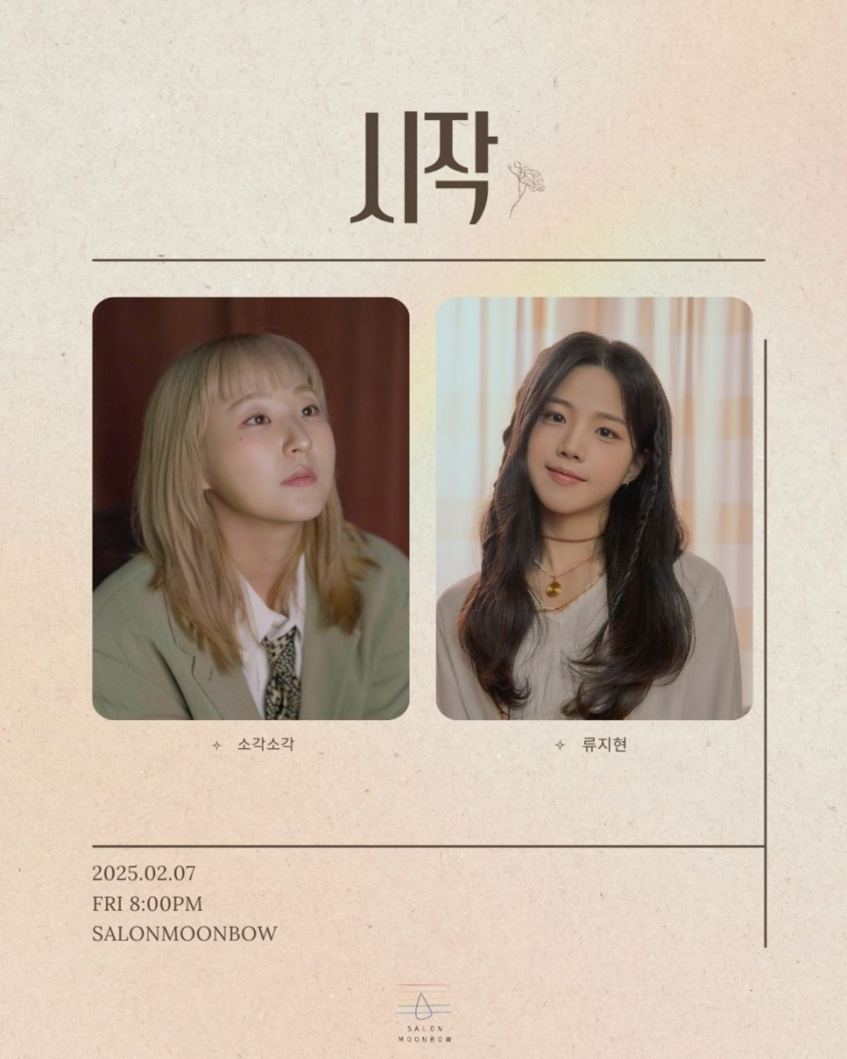 ‘시작’은 류지현이 생애 처음으로 펼치는 소극장 콘서트로, 여성 싱어송라이터 소각소각과 함께 한다. 류지현과 소각소각이 각자의 특색을 살린 무대를 선보일 예정으로 두 사람의 음악적 시너지에도 기대가 모아진다.