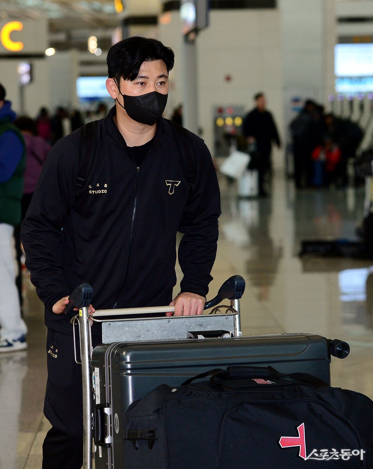 KIA 타이거즈가 22일 인천국제공항을 통해 2025시즌 스프링캠프가 열리는 미국으로 출국한다. KIA 손승락 수석코치가 출국장으로 향하고 있다. 인천국제공항 | 김민성 기자 marineboy@donga.com
